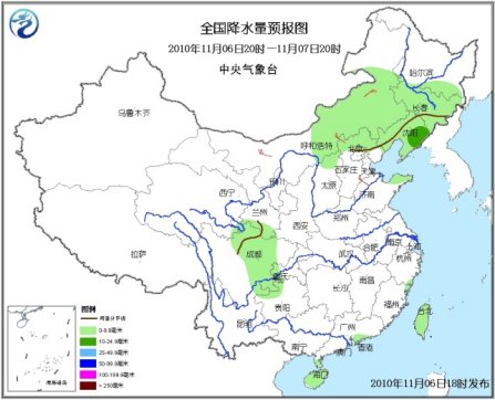 6日20時至7日20時,甘肅南部、川西高原東北部、內蒙古中部和東部偏南地區(qū)、東北地區(qū)中南部、華北北部等地有小到中雨(雪)或雨夾雪;四川盆地大部、重慶西南部、貴州西北部、福建東北部、廣東珠江三角洲地區(qū)、海南、臺灣等地有小到中雨或陣雨。內蒙古中東部、東北地區(qū)、華北等地有4~6級風。渤海、黃海北部將有4~6級西南風轉7~8級、陣風9~10級的西北風。東海南部、南海西北部和南部、北部灣將有4~6級東北風;臺灣海峽、臺灣以東洋面和以南海域、南海東北部和中部海域將有6~7級、陣風8級的東北風。