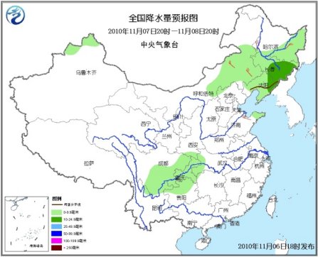 7日20時至8日20時,新疆北部、川西高原東南部、內蒙古東部偏南地區(qū)、黑龍江東部和南部、吉林、遼寧等地有小到中雨(雪)或雨夾雪;山東半島、四川盆地大部、重慶、湖北西南部、貴州北部、云南東北部、臺灣等地有小雨或陣雨;內蒙古東部、東北地區(qū)、華北東部、黃淮東部等地有4~6級風。渤海、黃海北部將有6~8級、陣風9級西北風;黃海中部將有6~7級、陣風8級西北風。黃海南部將有5~6級西北風;東海北部將有5~6級偏北風;東海南部、臺灣以東洋面、南海西北部和南部將有4~6級東北風;臺灣海峽、臺灣以南海域、南海東北部和中部海域將有5~7級東北風。
