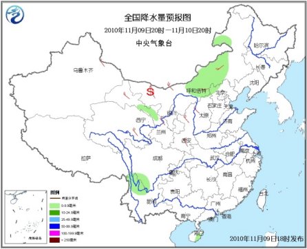 9日20時(shí)至10日20時(shí),內(nèi)蒙古中部、甘肅祁連山區(qū)等地有小(陣)雪或雨夾雪;川西高原南部、云南西北部、海南東部等地有小雨或陣雨。新疆北部和東部、西北地區(qū)中東部、內(nèi)蒙古大部、華北大部、東北西部、黃淮大部等地有4~6級偏北風(fēng);內(nèi)蒙古西部,甘肅西部有揚(yáng)沙或浮塵天氣,局部地區(qū)有沙塵暴。臺灣海峽、臺灣以南海域、南海東北部和中部海域?qū)⒂?~7級、陣風(fēng)8~9級的東北風(fēng)。