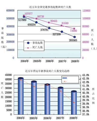 就在今天,公安部網(wǎng)站發(fā)表文章稱,2008年“全國道路交通安全形勢總體平穩(wěn)”。文章列舉了一系列數(shù)據(jù):2008年,全國共發(fā)生道路交通事故265204起,造成73484人死亡、304919人受傷,直接財產(chǎn)損失10.1億元。與2007年相比,以上各項都有所減少。