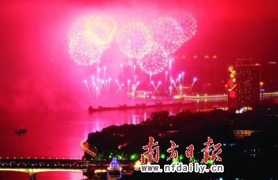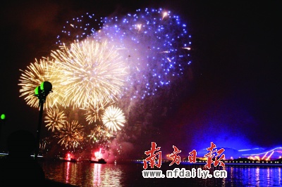 今年燃放的煙花新穎別致。許多曾在北京奧運(yùn)會(huì)開(kāi)閉幕式上令世界驚艷的煙花表演品種昨日在廣州匯聚一堂,貫穿整個(gè)晚會(huì)。