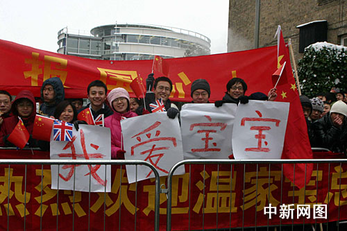 中新網(wǎng)倫敦2月2日電(記者 張朔)當(dāng)?shù)貢r(shí)間二月二日下午,即將結(jié)束訪英和訪歐行程的中國(guó)總理溫家寶踏雪到訪劍橋大學(xué),受到學(xué)子們的熱烈歡迎。有的學(xué)生甚至還打出了中文標(biāo)語(yǔ):“我愛(ài)寶寶。”