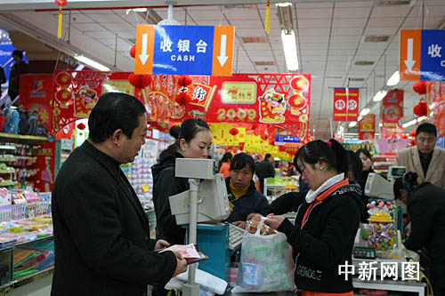 與收銀出口排著長隊交款的年貨采購人群比,超市進門最顯眼的情人節(jié)專柜前則顯得有些冷清。只有一個藏族小姑娘在默默打理著柜前的巧克力和玫瑰花。記者問她,“是不是受到金融危機的影響,情人們用節(jié)儉代替了浪漫,才使得生意沒有預(yù)期的火爆?”