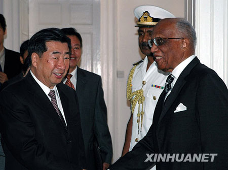 中新網(wǎng)2月18日電 據(jù)外交部網(wǎng)站消息,2月16日,巴巴多斯總督赫斯本茲在首都布里奇頓總督府會(huì)見(jiàn)了到訪的中國(guó)國(guó)務(wù)院副總理回良玉。