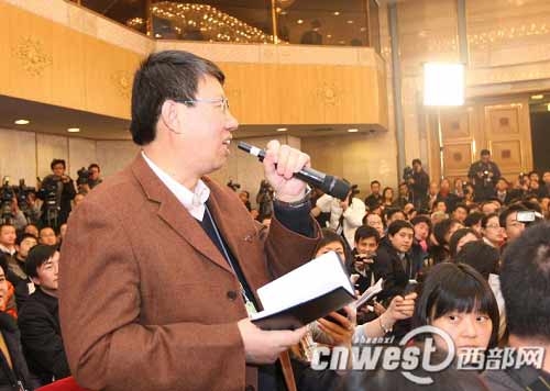 在4日召開(kāi)人大會(huì)議的首次新聞發(fā)布會(huì)上,中外媒體云集,一般地方媒體很難獲得提問(wèn)的機(jī)會(huì)。《陜西日?qǐng)?bào)》的記者卓九成可能沒(méi)想到自己能得到提問(wèn)的機(jī)會(huì),當(dāng)話筒遞到他的手里,硬是半天沒(méi)說(shuō)一句話,直到主持人一句“別緊張”,才蹦出“太激動(dòng)了”幾個(gè)字。但是,這位曾經(jīng)參加過(guò)八次全國(guó)“兩會(huì)”報(bào)道的資深記者因?yàn)樘d奮,居然把話筒拿反了,現(xiàn)場(chǎng)響起一片善意的笑聲,不過(guò)在笑容之中,很多記者眼神中流露更多的是羨慕。