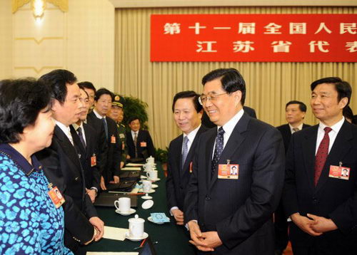 胡錦濤當天下午來到他所在的江蘇代表團,在聽取了九位代表的發(fā)言后,胡錦濤表示,當前的國際國內形勢可以用兩句話來概括,一句話是挑戰(zhàn)確實嚴峻,再一句話是機遇依然存在。要進一步落實中央宏觀調控政策措施,切實做好擴內需、保增長,調結構、上水平,抓改革、增活力各項工作,在應對挑戰(zhàn)中開創(chuàng)新局面,在克服困難中實現(xiàn)新發(fā)展。