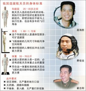 航天專家介紹,此類航天員選拔主要針對我國載人航天戰(zhàn)略第三步,為建造長期有人照料的發(fā)射空間站做選拔,最早或于2015年前飛天。與第一批航天員選拔標準相比,此次選拔將更側重對文化知識水平的考查,同時極有可能出現(xiàn)女航天員的身影。在不遠的將來,我國航天員中也將出現(xiàn)科學家的面孔。