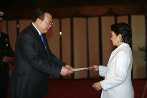 遞交國書后,阿羅約總統(tǒng)會見了劉大使。劉大使首先向阿羅約總統(tǒng)轉(zhuǎn)達了胡錦濤主席的親切問候。他說,發(fā)展中菲友好合作關(guān)系對兩國具有戰(zhàn)略意義,阿羅約總統(tǒng)高度重視中菲關(guān)系,為中菲戰(zhàn)略性合作關(guān)系發(fā)展作出了重要貢獻,中方表示贊賞。菲律賓是中國的重要鄰邦,中方高度重視中菲關(guān)系,全面加強中菲友好合作符合兩國人民的利益,有利于地區(qū)和平與發(fā)展。面對當前國際金融危機,中方愿與菲方以及東盟和國際社會一道努力,共度難關(guān)。作為新任駐菲大使,他將竭盡全力,為推動中菲關(guān)系發(fā)展、增進兩國人民友誼作出貢獻。
