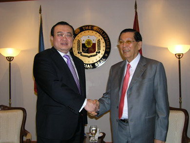 恩里萊對(duì)劉建超到任表示熱烈歡迎,并請(qǐng)劉建超轉(zhuǎn)達(dá)對(duì)吳邦國(guó)委員長(zhǎng)和賈慶林主席的問(wèn)候。他表示,菲中兩國(guó)人民的友好交往歷史悠久,菲律賓視中國(guó)為友好鄰邦和重要朋友,菲方愿與中方一道推進(jìn)兩國(guó)政治、經(jīng)貿(mào)關(guān)系向前發(fā)展。