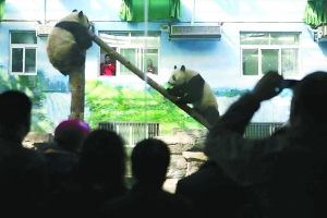 上午10時(shí),在大熊貓館已擠滿了游客,他們紛紛拍照、攝像留念。游客張然說,他家住在通州區(qū),早晨6時(shí)就乘車出發(fā)了,7時(shí)多一點(diǎn)就到動(dòng)物園了。拿著手中的相機(jī),張然告訴記者,他在這拍了100多張了,記者看到,幾乎每只大熊貓的各種動(dòng)作都拍全了。