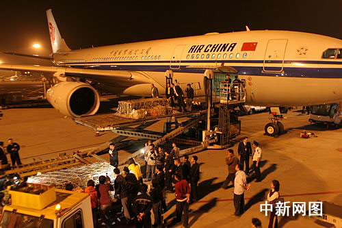 中新社成都三月二十二日電(包力達 楊杰 金朝陽)二十二日晚二十時三十五分,經過兩個半小時的飛行,運載著八只“奧運熊貓”的國航CA四一0四航班平穩(wěn)降落在成都雙流機場。隨后,工作人員將它們裝上專用貨車,連夜向中國保護大熊貓研究中心雅安碧峰峽基地駛去。于兩個多小時后到達震后新家。