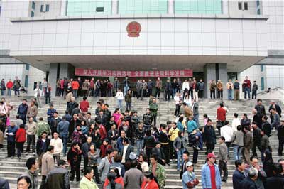 昨天早晨不到8點(diǎn),在習(xí)水縣法院大樓前,除了新華社、中央電視臺(tái)、中國(guó)青年報(bào)等眾多媒體記者外,還聚集了大量群眾!傲(xí)水出了這樣大的丑聞,很丟臉。”一名當(dāng)?shù)厝罕娬f,他想看看,究竟是一些什么樣的人這樣喪盡天良。