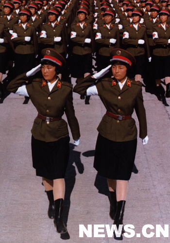 英姿颯爽的女衛(wèi)生兵是建國以來第一次出現(xiàn)在閱兵序列中。第七排的排頭兵是朝鮮族女戰(zhàn)士康輝。1957年國慶節(jié),她的父親參加了首都的閱兵式,F(xiàn)在,她又成為第一批受閱女兵的一員,真是幸福的兩代人。觀禮臺上,來自邊疆的少數(shù)民族觀禮代表們知道女衛(wèi)生兵方隊中還有滿、蒙古、回、壯、彝、鄂溫克、達斡爾族姐妹,高興地向女兵方隊鼓掌、致意。