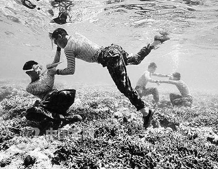 在出征的行列里,有一位叫譚振文的上等兵引起了記者的注意:入伍前,他是清華大學大三的學生。他原本不在守備部隊當兵,這次守礁是主動向機關寫申請爭來的。兩天前,他如愿背著行囊成為南沙衛(wèi)士的一員。由于暈船他額上冒著虛汗,說話卻一點沒露怯:“當兵兩年能到南沙去守一次礁,比出一次國、拿一枚軍功章更有意義,這必然是一段終生難忘的軍旅記憶!