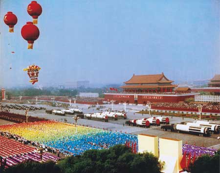 1984年10月1日,在中華人民共和國國慶35周年閱兵式上,我戰(zhàn)略導(dǎo)彈部隊首次公開亮相,當鐵流滾滾駛過天安門的時刻,世界的目光在這里聚焦。戰(zhàn)略導(dǎo)彈,這一大國地位的象征,令國人振奮,令世界矚目。第二炮兵部隊3種型號的導(dǎo)彈組成受閱方隊,第一次向世界展示了戰(zhàn)略導(dǎo)彈的現(xiàn)代化建設(shè)成就和作戰(zhàn)實力,受到中央軍委的通令嘉獎。