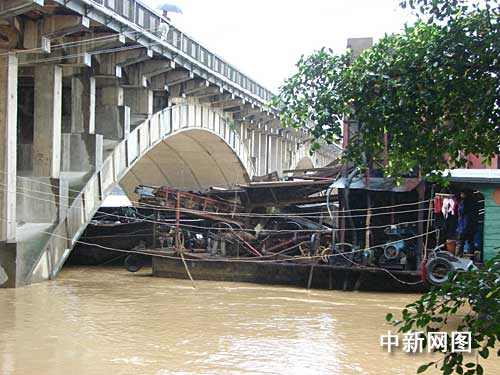 中新網(wǎng)柳州7月5日電 (李建明 王剛)廣西柳州市柳城縣柳城大橋險情今天暫時得以緩解——7月3日晚,三艘百噸級采砂船被洪水沖至大橋橋拱,并死死卡住大橋,加上大橋本身正在搶修,情況異常緊急。