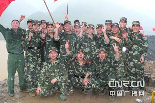 廣西羅城卡馬水庫右壩首泄洪槽在今天7時和中午12時15分兩次爆破之后,泄洪底口堅硬的混凝土護墻已被分解,但要過水還需加大開挖深度。13時,武警水電一總隊開挖突擊隊在三支隊支隊長朱國良的帶領(lǐng)下,冒雨展開反鏟清碴突擊戰(zhàn)。經(jīng)過5個小時的突擊行動,水電官兵成功開挖出泄洪槽。