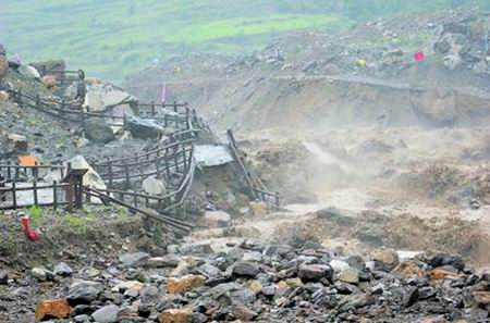 洪水沖毀青川縣東河口地震遺址公園景區(qū)內(nèi)部分游步道,淹沒東河口小學遺址;大雨造成的泥石流沖毀景區(qū)紀念廣場,部分路面受損,山洪還沖走移動小賣亭,遺址公園周邊農(nóng)戶房屋也不同程度受損。