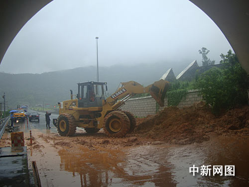 8月9日中午12點30分許,位于福建方向三都嶺隧道北洞口上方,由于山上大量雨水聚集形成的小型山洪的沖刷,導致將近30平方的泥石流順著山洪沖到了高速公路上,造成慢車道和部分快車道上泥石成堆,通行嚴重受阻,高速交警立即在福建方向的躺下出口實施封道分流,過往車輛繞行國道。(完)