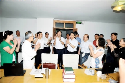 在烏魯木齊市人民檢察院,曹建明到辦案現(xiàn)場親切看望慰問正在辦理“7·5”案件的各族檢察人員和翻譯工作者,與他們一一握手。曹建明說,“7·5”事件是一起由境內(nèi)外“三股勢力”精心策劃和組織的打砸搶燒嚴(yán)重暴力犯罪事件,給人民群眾生命財產(chǎn)安全造成了重大損失,對新疆安全穩(wěn)定造成了嚴(yán)重破壞。事件發(fā)生后,全區(qū)各級檢察機(jī)關(guān)迅速行動,忠實(shí)履行檢察職責(zé),積極參與事件處置工作,為維護(hù)民族團(tuán)結(jié)、維護(hù)社會穩(wěn)定、維護(hù)社會主義法制、維護(hù)人民群眾根本利益發(fā)揮了重要作用。目前,“7·5”事件的第一批案件已經(jīng)進(jìn)入檢察環(huán)節(jié),大家要以高度的政治責(zé)任感和使命感,認(rèn)真履行批捕、起訴等檢察職責(zé),依法把好案件定性關(guān)、事實(shí)關(guān)、證據(jù)關(guān)、程序關(guān)和法律適用關(guān),依法妥善處理好第一批案件,確保辦案取得最好的法律效果、社會效果和政治效果。各族辦案檢察人員和翻譯工作者表示,一定以對黨、對國家、對民族、對法律高度負(fù)責(zé)的態(tài)度,把案件辦成鐵案,經(jīng)得起歷史、法律的檢驗。