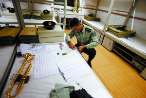 6月進(jìn)入聯(lián)合軍樂(lè)團(tuán)駐地后,逄博和父親都住在一棟樓,但是分走不同的門洞。逄博說(shuō),他很少去找父親,也從沒(méi)有向父親求助過(guò)。封閉集訓(xùn)3個(gè)多月來(lái),逄博總是和隊(duì)友一起埋頭苦練。早上6點(diǎn)起床,除了吃飯午休,一直練到晚上七八點(diǎn),然后還要背曲譜。