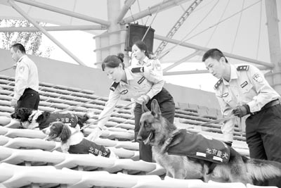來自北京、天津、內(nèi)蒙古等11個省市及解放軍北京軍犬基地的近200條國慶安保警犬,近日亮相北京警察訓(xùn)練總隊(duì),進(jìn)行國慶安保集體誓師。據(jù)了解,這些警犬目前正在警察訓(xùn)練總隊(duì)進(jìn)行專業(yè)技術(shù)強(qiáng)化訓(xùn)練,在國慶安保工作中,這支警犬技術(shù)隊(duì)伍將承擔(dān)搜爆、安檢以及刑事案件、突發(fā)事件現(xiàn)場處置等多項(xiàng)工作。