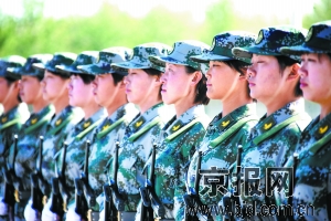 在女民兵方隊(duì),隊(duì)員們訓(xùn)練歸來最愛開的一個(gè)玩笑,便是撩開“劉海兒”,欣賞各自腦門上那道黑白分明皮膚,互相打趣:“咱們可以給美白護(hù)膚產(chǎn)品作‘活廣告了’!