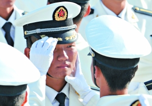 “特種兵迷彩服土黃色,易城市作戰(zhàn);空降兵淺灰色和藍天的背景相似,草綠色的二炮更適合野外,新款武警軍帽上的金色飾條,則讓武警顯得威武。”一位現(xiàn)場的教官說。