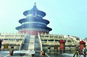 昨天下午,在市游園指揮部和市公安局國(guó)慶游園活動(dòng)保衛(wèi)指揮部的統(tǒng)一組織下,崇文區(qū)政府、崇文區(qū)游園安保分指揮部在天壇公園展開(kāi)了歷時(shí)50分鐘的可疑物排查、“大人流”疏控、滅火救援等突發(fā)事件處置演練。