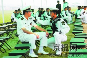 在水兵方隊(duì),何健和何煒是一對鮮為人知的父子。父親何健先后參加了國慶35周年、國慶50周年國慶首都閱兵,加上這次以水兵方隊(duì)政委的身份參加新中國成立60周年國慶首都閱兵,他已經(jīng)是第三次來到閱兵村。兒子何煒去年底參軍入伍并被挑選為水兵方隊(duì)受閱隊(duì)員。9歲時,何煒因爸爸參加受閱任務(wù)無暇照顧自己,還經(jīng)?拗鴮寢屨f“爸爸是不是不要我了”。10年后,這個非軍校不上的“犟小伙”毅然放棄上地方大學(xué)的機(jī)會,不顧媽媽的勸說,參軍來到部隊(duì)。