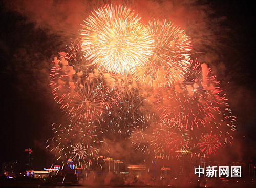中新網(wǎng)武漢10月1日電 (記者 徐金波)1日晚8時(shí),一場盛大的煙火晚會在江城武漢的長江兩岸、月湖之濱和武漢光谷同時(shí)燃起,政府部門以長天為幕布、用煙花做筆,在空中描繪了新中國六十年來武漢巨大變遷,近百萬民眾趕往煙火燃放地點(diǎn)飽覽。