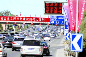 還不到8時,杜家坎就發(fā)了威。今天早晨,本市多條高速公路迎來了第一波出京高峰,首先發(fā)難的就是京石高速。隨后不久,京承、八達嶺高速陸續(xù)出現(xiàn)了車多情況,通往花博會現(xiàn)場的京承高速市區(qū)——火沙峪出口路段行駛困難。