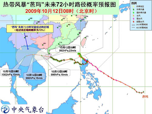 預(yù)計(jì),“芭瑪”將以每小時(shí)15公里左右的速度繼續(xù)向西偏北方向移動(dòng),強(qiáng)度略有減弱,穿過海南島后,將于12日晚上到13日凌晨進(jìn)入北部灣海面。
