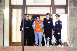 晚9時(shí)30分,審判長(zhǎng)宣布“休庭,明日繼續(xù)開(kāi)庭。”之后,謝才萍由數(shù)名法警單獨(dú)押解走向警車(chē),而其他被告人則被羈押在大廳內(nèi)暫停。
