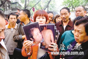 交警暫時(shí)將公路封道,圍觀人群將法院大門(mén)圍得水泄不通。9時(shí)40分,兩輛交警警車(chē)前后開(kāi)道,3輛法警車(chē)夾在當(dāng)中,5輛警車(chē)單獨(dú)押解著謝才萍回看守所。5分鐘后,其他被告人才被警車(chē)押解回看守所。
