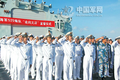 “我不是軍人,但我卻不自覺(jué)地?zé)釡I盈眶,神圣地舉起了右手宣誓!”新華社隨艦記者楊志剛?cè)缡钦f(shuō)。