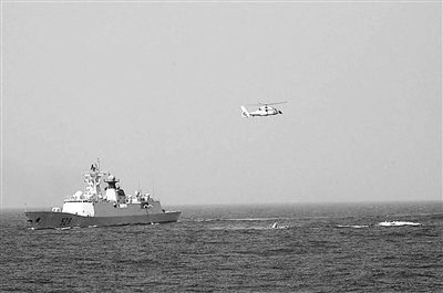 “白鷺洲”號(hào)油輪船員一面用消防水龍頭向接近的“海盜快艇”噴射高壓水流,一面向我海軍護(hù)航編隊(duì)求救。“舟山”艦如一條白色蛟龍,疾速向“海盜快艇”聚集海域駛來。我護(hù)航編隊(duì)直升機(jī)上特戰(zhàn)隊(duì)員接連對(duì)“海盜快艇”進(jìn)行攔阻射擊,并由“舟山”艦派出2艘艦載小艇對(duì)“海盜快艇”進(jìn)行登臨檢查。“藍(lán)天戰(zhàn)鷹”和“銀色蛟龍”聯(lián)手驅(qū)散了船員心中的陰霾。