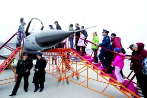 在殲-10展示區(qū),工作人員專門設(shè)置了攀登梯,參觀人員可以通過攀登梯走到機艙前,觀看到駕駛室內(nèi)的所有設(shè)備。而在世界一流的空警2000預(yù)警機區(qū)域,工作人員設(shè)立了一個約100米的隔離區(qū)域,參觀人員只能在隔離區(qū)域外遠觀。