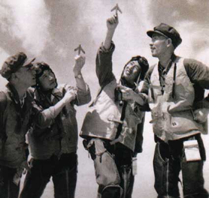 突然,“叮叮叮……”指揮所與休息室的直通電話急促地響了。指揮所命令宋義民等四機(jī)進(jìn)入一等。飛行員奔向各自的飛機(jī)。隨著一發(fā)綠色信號(hào)彈升起,四架飛機(jī)象離弦的利箭,吼叫著騰空而起,直往東南戰(zhàn)區(qū)飛去……