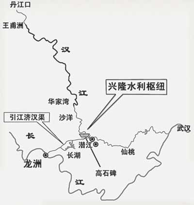 經(jīng)過多年爭議和論證,引江濟(jì)漢工程設(shè)計方案到2009年9月通過專家評審。根據(jù)設(shè)計,從長江荊江河段引水至漢江興隆河段,進(jìn)水口位于荊州市李埠鎮(zhèn),出水口位于潛江市高石碑鎮(zhèn),全長約67公里。