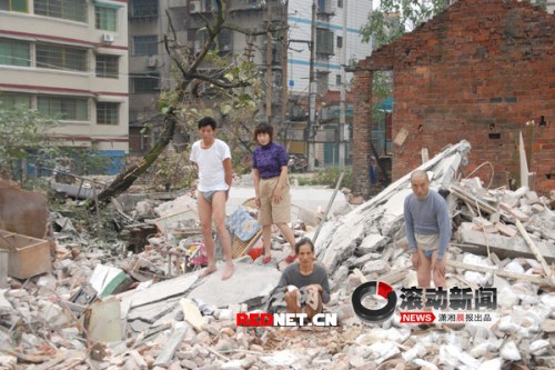 2008年11月8日凌晨,石鼓區(qū)桑園路76號兩棟居民樓的居民正在熟睡,一伙身份不明的社會閑散人員突然破門而入,將居民們強(qiáng)行從床上拖起,用的士運(yùn)走,然后用挖土機(jī)將這兩棟居民樓夷為平地,居民們的財(cái)物全部被埋在廢墟中。更令人發(fā)指的是,從床上被拖起的居民要求穿件衣服御寒時,竟遭到暴徒的毒打,以至被迫穿著短袖睡衣和短褲,在寒風(fēng)中凍了數(shù)小時。