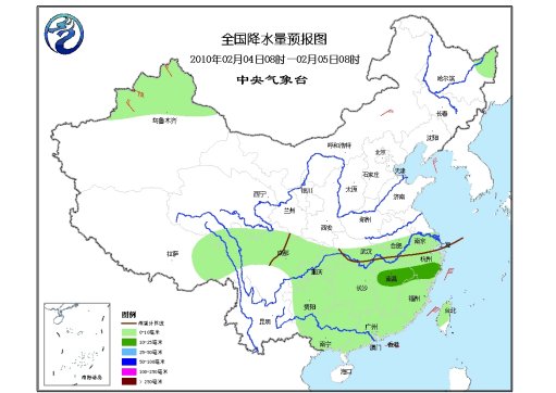 4日08時至5日08時,新疆北部、西藏東部、青海東南部、川西高原北部、黑龍江東北部、江淮南部、江漢大部、江南東北部等地有小雪(雨)或雨夾雪;西南地區(qū)東部、江南大部、華南大部有小到中雨或陣雨。內(nèi)蒙古東部、東北等地有4~5級偏北風。東海南部、臺灣海峽有6~7級東北風。