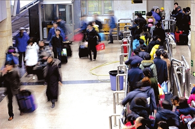 據(jù)了解,目前返程客流主要集中在京滬、京哈的哈爾濱、合肥,京九線河南、湖南兩省的沿線主要城市,以探親回京人員、旅游客流為主。為此,北京各火車站已經(jīng)做好返程預(yù)案,在哈爾濱、齊齊哈爾、洛陽、襄樊、信陽等方向新增節(jié)后臨客。北京南站也增開京津城際動車,發(fā)車間隙達(dá)到5分鐘一趟,方便到天津、塘沽探親、訪友的旅客返京。