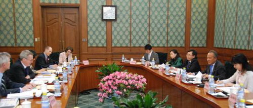 中新網(wǎng)2月26日電 據(jù)外交部網(wǎng)站消息,25日,中國(guó)外交部副部長(zhǎng)崔天凱同加拿大副外長(zhǎng)、G20峰會(huì)事務(wù)協(xié)調(diào)人愛(ài)德華茲在釣魚(yú)臺(tái)舉行會(huì)談,就G20加拿大峰會(huì)籌備、G20建章立制工作及其它共同關(guān)心的問(wèn)題交換看法。