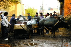 家住河?xùn)|村的朱家付每天趕著牛車,走個(gè)把小時(shí)來取水。自從打井隊(duì)在雙合村口打出水井后,朱家付結(jié)束了每天花兩小時(shí)去小壩子村取水的煩惱。他說,“那時(shí)候4個(gè)人來回6個(gè)小時(shí),用桶挑水!