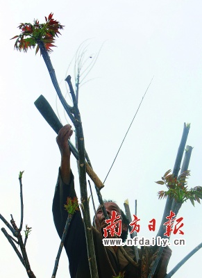 青菜開始開花,但這不是好兆頭。吃午飯時(shí),竇才榮“小心翼翼”地夾了幾筷子青菜,剩下的留給了孩子。而村民陳國才一拍屁股,索性砍掉了院子里生長了數(shù)年的椿樹,他手中的一捧椿葉將是他家未來幾月的青菜儲備。