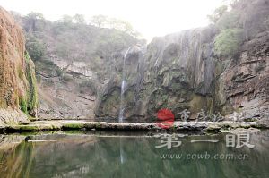 瀑布旁邊的巖壁長滿了文竹和馬耳朵草,現(xiàn)在已經(jīng)全部枯黃。景區(qū)里邊的竹林、枇杷樹等,大部分也枯黃。植被下邊的泥土變成了沙,用手抓起來輕輕一捏就變成細(xì)小粉末,從指縫中往下滑。