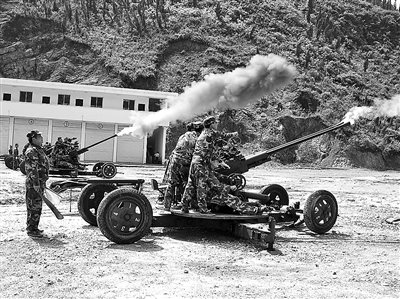 “瞄準(zhǔn)目標(biāo),發(fā)射!”隨著茅坪作業(yè)點(diǎn)指揮員呂鳳弟一聲令下,3枚炮彈瞬即射向?yàn)踉疲棵心繕?biāo)……短短17分鐘,187枚炮彈從6個(gè)作業(yè)點(diǎn)相繼射向?yàn)踉啤?