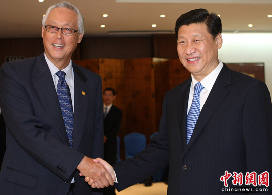 在會見吳作棟時,習近平表示,中新關系發(fā)展順利。去年,胡錦濤主席對貴國成功的國事訪問為中新關系注入了強大動力。新加坡是最早參與和支持中國對外開放的國家之一,中國在改革開放過程中借鑒了不少新加坡的有益經(jīng)驗。中新蘇州工業(yè)園區(qū)開發(fā)建設16年來取得了令人矚目的成就。資政先生親自倡議建立的天津生態(tài)城項目啟動一年多來進展順利,成為中新合作的又一亮點。
