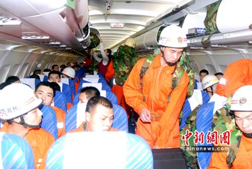 目前,南航的第一架救援包機已于16時30分滿載著157名公安消防部隊官兵、2.2噸生命探測儀等設(shè)備,從廣州白云機場起飛,飛赴青海西寧機場。據(jù)執(zhí)行此次航班的南航廣州飛行部A320機隊副經(jīng)理朱文學(xué)、副駕駛張漫綠機組介紹,目前除廣州地區(qū)有雷雨天氣外,航路天氣情況良好,如果正常飛行,飛機將在三個小時內(nèi)抵達災(zāi)區(qū)機場。